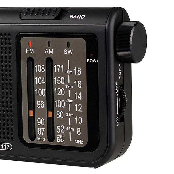If you want a portable battery operated radio, V117 transistor radio powered by AA battery, this portable model is your best companion when you're doing your laundry, cooking, working at the office or simply listening to the music and news while in bed.this compact radio should be on top of your list .