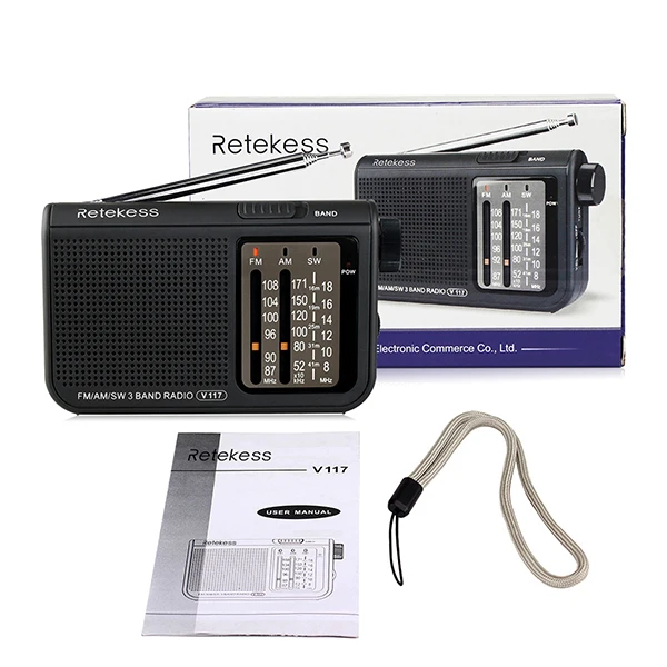 RETEKESS V117 Radio Portable AM FM Small Emergency Transistor Radio Receiver Shortwave Battery Powered Tuner Receiver For Senior